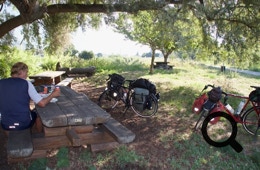 Nachdem wir die Rhone überquert haben, finden wir einen schönen Picknickplatz und genehmigen uns erstmal ein gemütliches Frühstück.