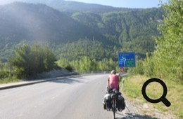 Gegen neun Uhr starten wir bei etwa 32°C, kaufen in einem Tankstellen-Coop ein und beginnen mit dem Radweg Nr. 1, der etwas verschlungen auf die Hauptverkehrsstraße führt. Die Straße ersetzt für etwa zehn Kilometer die A 9, daher ist viel los. Außerdem ist es sehr warm und geht ständig leicht bergauf.