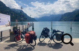 Kurz vor Brunnen müssen wir einmal auf die Straße, da der Geh-/Radweg von Polizei und Reportern belagert ist. Vorgestern ist hier ein Auto 45 Meter tief in den See gestürzt und wird zur Zeit geortet. Bei 180 Metern Seetiefe bestimmt nicht einfach.