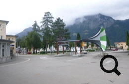 Nachdem wir den Gotthard unterquert haben, geht alles recht schnell: Erstfeld, Altdorf, Flüelen - schon sind wir da. Als erstes sehen wir das riesige dekorative Schiffshorn, welches seit 2015 direkt zwischen Bahnhof und Anlegestelle steht. Ansonsten ist hier nicht viel los.