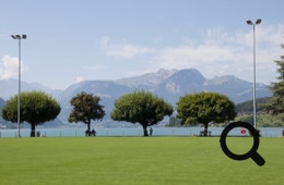 Wir frühstücken gemütlich am Zelt und machen uns dann auf den Fußweg in die City von Sarnen. Es ist wieder mal sehr warm. Wir gehen erst am See entlang, dann einen Wanderweg an den Sportplätzen vorbei.