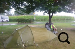 Dann, ab Cham, holt uns der Regen ein. Egal, wir sind ja gleich am Ziel! Der Radweg führt uns geradewegs in den TCS-Campingplatz von Zug, wo wir einchecken, aufbauen, duschen und essen. Freitag ist Paella-Tag, ab 16 Uhr wird dort mit viel Liebe eine große Paella-Pfanne gefüllt, die dann ab 18 Uhr serviert wird. Klare Empfehlung!