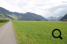 In Gisikon möchte uns die Nr. 9 dann durch Hügel hetzen, aber wir lassen uns lieber von Komoot leiten, das geht schneller und mit weniger Höhenmetern. Hinter Rotkreuz sehen wir schon den Zuger See und radeln durch wellige Wiesen.