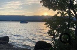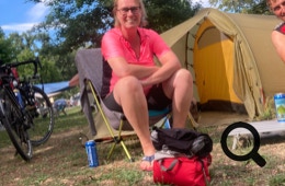 Die Wiese ist schon ganz gut belegt, auch von einigen Radreisenden. Wir genießen die Sonne, kochen uns ein Abendessen und lassen uns später zum Sonnenuntergang am See nieder, wo wir die Wasservögel beobachten. Den restlichen Abend verbringen wir beim Würfelspiel vorm Zelt.