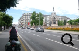 Wir folgen eine Zeitlang der Route 1, die uns über zwar schöne, aber steile Strecken abseits der Hauptstraße führt. Das halten wir bei der Hitze für überflüssig und benutzen ab Rolle nur noch die Hauptstraße, welche wechselweise über Radwege oder Schutzstreifen verfügt. So kommen wir viel schneller voran. Den See, den Mont Blanc und später auch unser Ziel Genf haben wir hier auch die ganze Zeit im Blick.