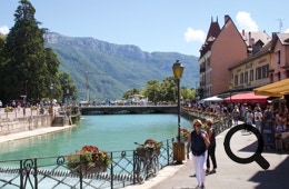 Zufällig treffen wir hier auf eine französische Rennradfahrerin, die versucht, uns einen tollen Weg nach Annecy zu beschreiben. Wir können den Weg nicht auswendig behalten, da man mindestens zwanzig Mal abbiegen muß. Also fährt sie uns voraus und wir folgen ihr auf schönen Radwegen, statt einfach die Straße weiter zu fahren. Eine halbe Stunde später sind wir mitten in Annecy.