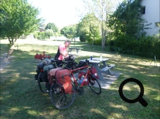 Bereits vor sechs Uhr stehen wir auf und beenden das Packen, was wir gestern Abend begonnen haben. Der Abbau geht leise vonstatten und um kurz nach sieben radeln wir vom Platz.