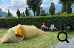Das Abendessen bereitet Sabine schon am späten Nachmittag zu, und nach dem Essen lassen wir den Tag vor dem Zelt in Ruhe ausklingen.