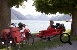 Heute packen wir gemütlich ein und sind entsprechend spät auf den Rädern unterwegs. Die Strecke kennen wir noch vom Vorjahr und sausen routiniert bis zum Alpnachstädter See. Dort setzen wir uns auf eine schattige Bank, genießen die Aussicht auf den See und beobachten die per Schiff anlandenden Touristen für die Pilatusbahn.