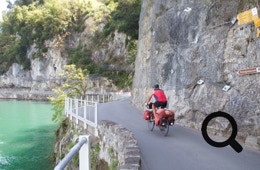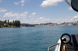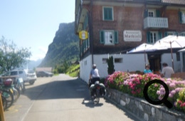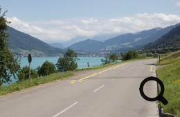 Also fix umdisponiert und auf den kurz darauf anlegenden Katamaran zugestiegen. In Luzern schauen wir uns nicht groß um und düsen sofort weiter über die Hauptstraße nach Küssnacht am Rigi. Bis Steinen, unserem heutigen Ziel, werden wir fast keinen Radweg mehr haben, nur noch Hauptstraße. Mit Glück ist dort ein Radstreifen.