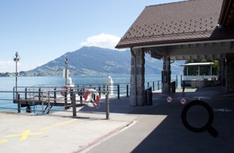 Die Abfahrt endet am Schiffsanleger, von dem gleichzeitig eine Standseilbahn nach oben auf den Berg führt. Der Fähranleger „Bürgenstock“ bringt uns leider nicht nach Weggis, gegenüber am Vierwaldstätter See, sondern bietet nur Direktverbindungen nach Luzern an.