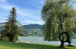 Es geht bergab nach Steinen, am dortigen Lauerzer See lassen wir uns im Camping Buchenhof nieder. Es ist heiß und wir freuen uns über den Schattenplatz auf der Zeltwiese, gehen sogar noch baden. Am Abend bekocht uns das nette Restaurant am Platz.