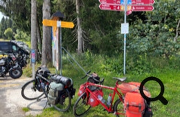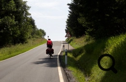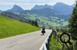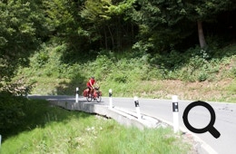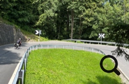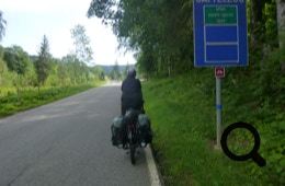 Die Straße ist für Lastwagen und Busse verboten, also haben wir es „nur“ mit jeder Menge Radfahrer, Motorradfahrer und ein paar Autos zu tun. Die Straße ist schattig und schmal, zwar ohne dolle Ausblicke, aber angenehm zu fahren.