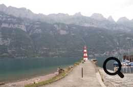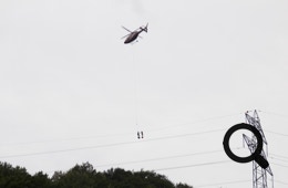 Hinter Walenstadt fahren wir im leichten Auf und Ab meist über Feldwege, später an der Seez entlang. Unterwegs beobachten wir eine 220-kV-Hochspannungsfreileitungswartung, bei der die beiden Monteure per Hubschrauber gesichert und umgesetzt werden.