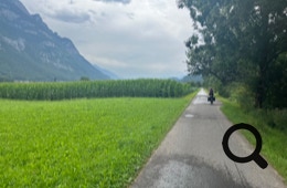 Ab Sargans fahren wir eine Zeit an der Bahn entlang bis Trübbach, wo wir auf den Rheindamm abzweigen. Wir haben Rückenwind und es herrscht kein Betrieb, so daß wir bis zur Holzbrücke nach Liechtenstein nur so dahinfliegen.
