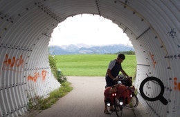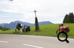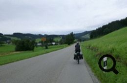 Grau, aber trocken beginnt der Tag. Nach einem ausgiebigen Frühstück bepacken wir die Räder in der Tiefgarage und verlassen Oberstaufen.