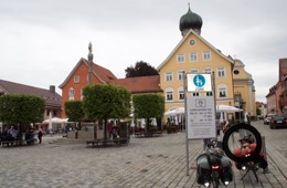 Bis Immenstadt läuft die Radroute über eine Nebenstraße durch die Bauernhöfe, immer an der Bahn entlang. Es ist frisch und Sabine trägt eine Jacke und Beinlinge, da es leicht abwärts geht. In Immenstadt schauen wir uns nur kurz um, da wir hier vor zwei Jahren schon einmal waren.
