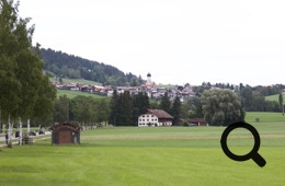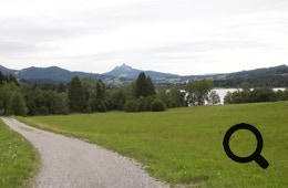 Hinter der Stadt, in Richtung Rauhenzell, fahren wir an einem schönen Weiher entlang, danach eine lange Birkenallee in Richtung Rettenberg. Ab dort steigt die Straße an, aber bis Kranzegg moderat. Hier gabelt sich der Radweg: links geht es in Richtung Oey-Mittelberg, rechts recht steil an der Straße entlang nach Wertach.