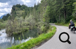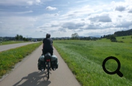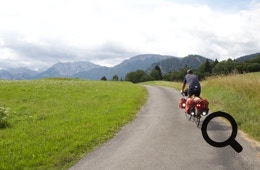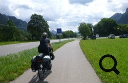 Wir frühstücken, unterhalten uns noch mit unserem Zeltnachbarn und fahren dann los. Zunächst geht es an der Landstraße auf dem Radweg entlang bis Nesselwang. Den dortigen Stau umfahren wir über Nebenstraßen und Radwege.