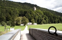 Mittlerweile ist es ganz schön warm und wir sind froh, daß wir nach einer weiteren Dreiviertelstunde in Reutte sind. Wir fahren erst noch am Lech entlang, dann auf der anderen Seite durch die Innenstadt, um eine Baustelle herum, bis wir den Campingplatz erreichen.