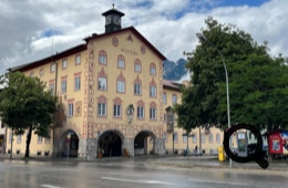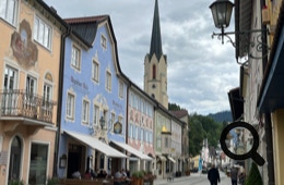 Stattdessen fahren wir mit der S-Bahn nach Deutschland, sprich Garmisch-Partenkirchen. Als wir dort ankommen, ist es noch bedeckt, wird aber nach und nach sonniger. Wir besichtigen die „Alte Ludwigstraße“ mit ihren schönen, alten und reich verzierten Häusern. Wir verweilen vor einem Brauereiausschank auf ein Getränk und gehen dann wieder zum Bahnhof. Im dortigen Supermarkt kaufen wir ein und lassen uns dann zurück nach Lermoos fahren.