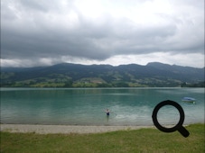 In Gumefens biegen wir zum Campingplatz ab und belegen einen Zeltplatz am Ufer. Sabine hält es nicht mehr aus und geht sofort schwimmen.