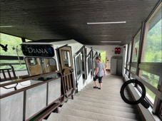 Nach der Mittagssiesta besuchen wir den Aussichtsturm „Diana“, den man mit der Standseilbahn erreicht. Ein hübscher Blick rundum und über die Stadt.