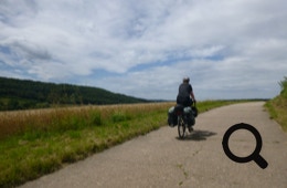 Ab dort radeln wir bei schönstem Wetter fast nur noch bergab über Mädelhofen und Uettingen, über Wüstenzell und Dertingen in Richtung Main. Immer hörbar ist dabei die A3, auf der der Verkehr tobt.
