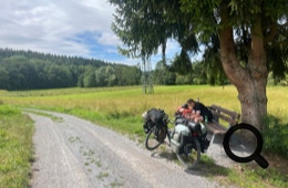 Ein Stück Mainradweg liegt jetzt noch vor uns, darauf kann man ganz entspannt bis Triefenstein radeln. Dort fahren wir erst durch eine Baustelle und dann einen kleinen steilen Berg hoch bis zur Rezeption des Main-Spessart Camping.
