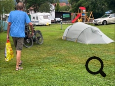 Als der Regen etwas nachläßt, kaufen wir im nahen „Netto“ Proviant für morgen ein und können danach tatsächlich vorm Zelt sitzen.