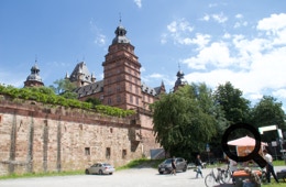 Schließlich erreichen wir das prächtige Aschaffenburg, wo richtig viele Menschen den Sonntag verbringen. Etwas problematisch ist die Fahrt über den Radweg, da er recht schmal und stark befahren ist. Zudem latschen hier viele Spaziergänger herum.