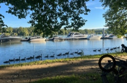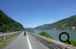 Frühstück gibt’s heute nur in Form von Kaffee, aber mit tollem Blick auf den Rhein. Wir folgen dem Rheinradweg, der direkt am Zeltplatz entlang läuft. Ohne Blick auf den Rhein fahren wir entlang des Hochwasserdamms bis Bingen.