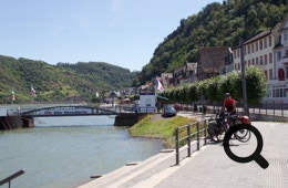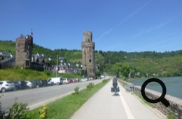 Dort verengt sich das Rheintal und wir begleiten den Rhein gemeinsam mit der Bahn und der Straße entlang der Burgen und Schlösser, die hier das UNESCO-Welterbe begründen. Es ist heiß und Schatten gibt es am Weg quasi nicht.