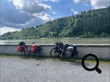 Über die Prinzregent-Luitpold-Brücke geht es auf den Donauradweg, den wir nur mit wenigen anderen Radfahrern teilen müssen. In Höhe von Erlau machen wir eine kleine Pause auf einer gemütlichen Bank am Fluß.