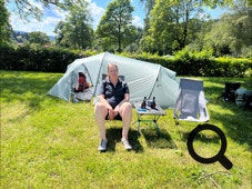 Bei einem Bierchen bauen wir das Zelt auf, gehen duschen und finden uns danach im Campingplatzlokal ein. Es folgt ein gemütlicher erster Zeltabend.
