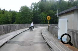 Zwischendurch passieren wir einen Grenzpfosten nach Deutschland hinein. Daß wir zwischendurch in Österreich waren, ist uns gar nicht aufgefallen. Die Grenzen verlaufen hier grün und unauffällig.