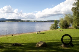 schön angelegter Platz am See, große Parzellen, gut ausgestattet, kleines Bistro