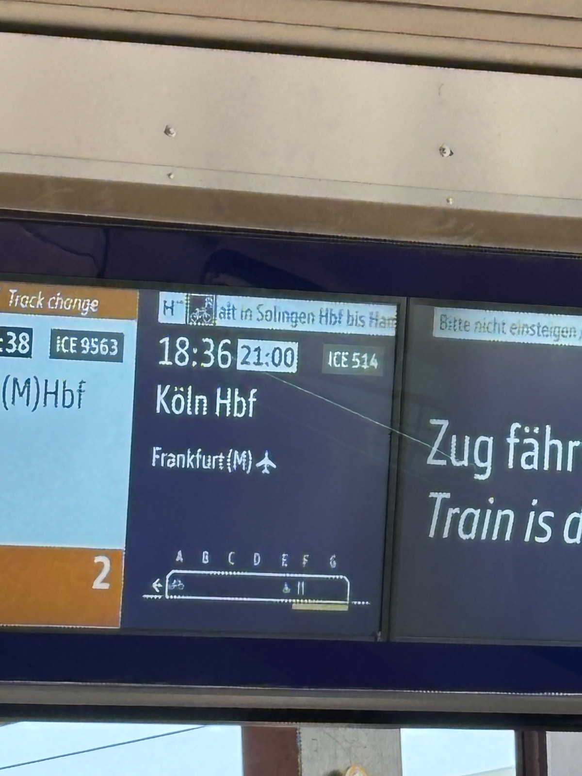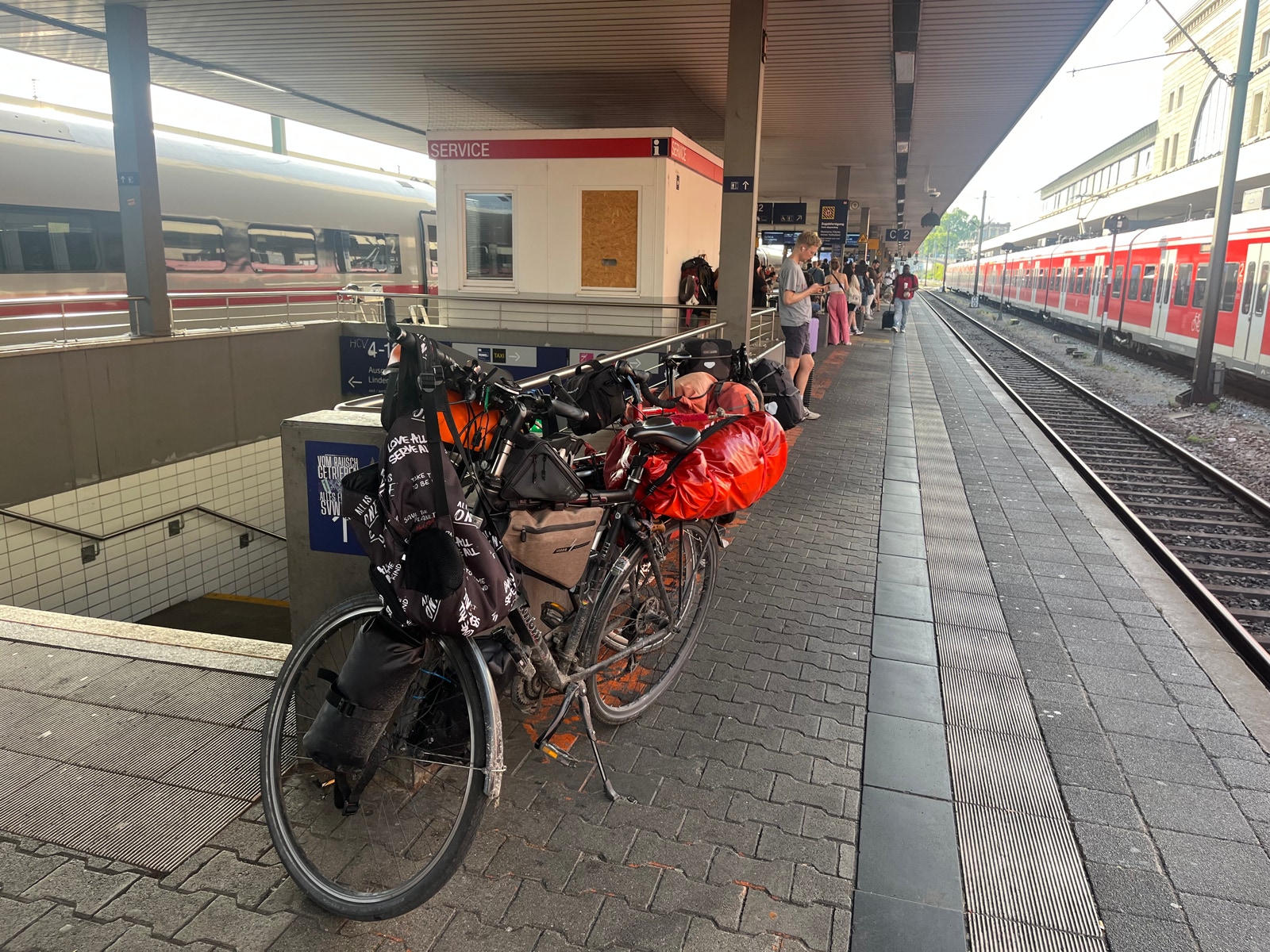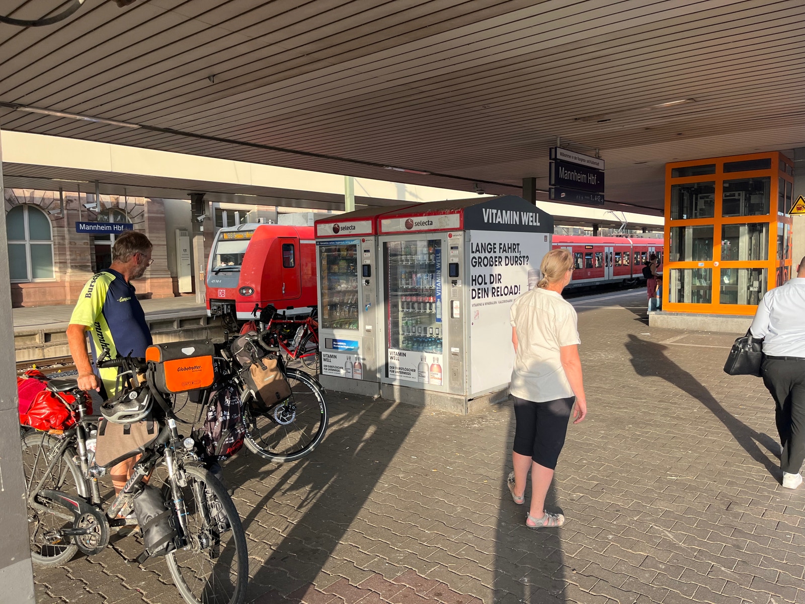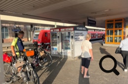 Im Mannheim besorgen Sabine und Wolfgang beim Reisezentrum Reservierungen für einen anderen Zug (IC), der in einer halben Stunde hier abfährt und uns auf jeden Fall schon mal bis Köln bringt.