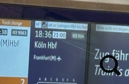 Sabine entdeckt zufällig (?), daß unser nächster Zug in Mannheim wegen einer Umleitung 2,5 Stunden später ankommen wird. Da ist sie wieder: Die Deutsche Bahn, wie wir sie kennen!