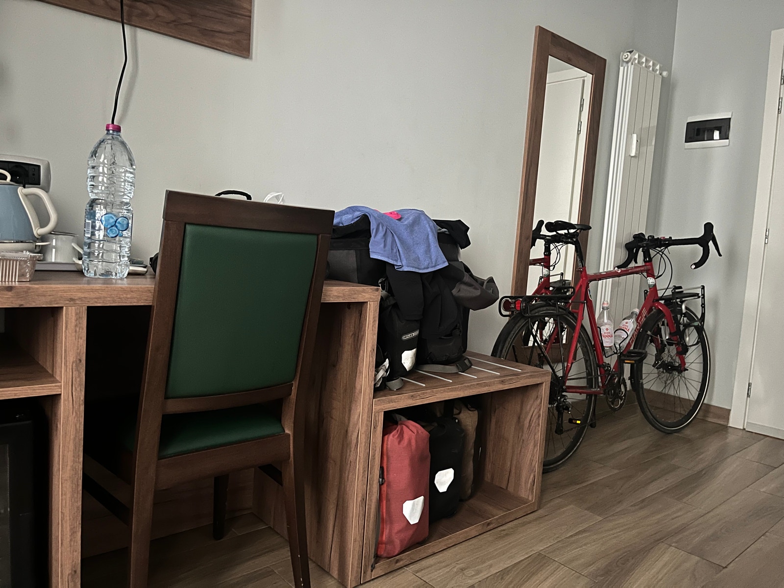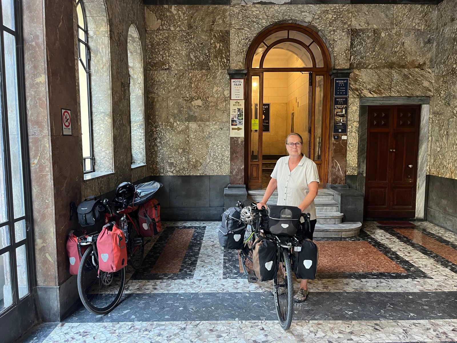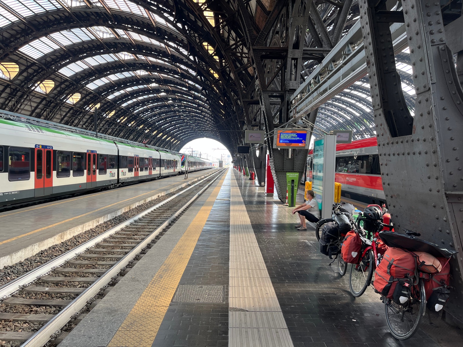 Wir stellen fest, daß wir im Hotel kein Frühstück gebucht haben (da keins angeboten wird) und gehen dafür ins Bahnhofsrestaurant gegenüber. Dann packen wir in aller Ruhe, beladen die Räder und schieben sie in den Bahnhof.