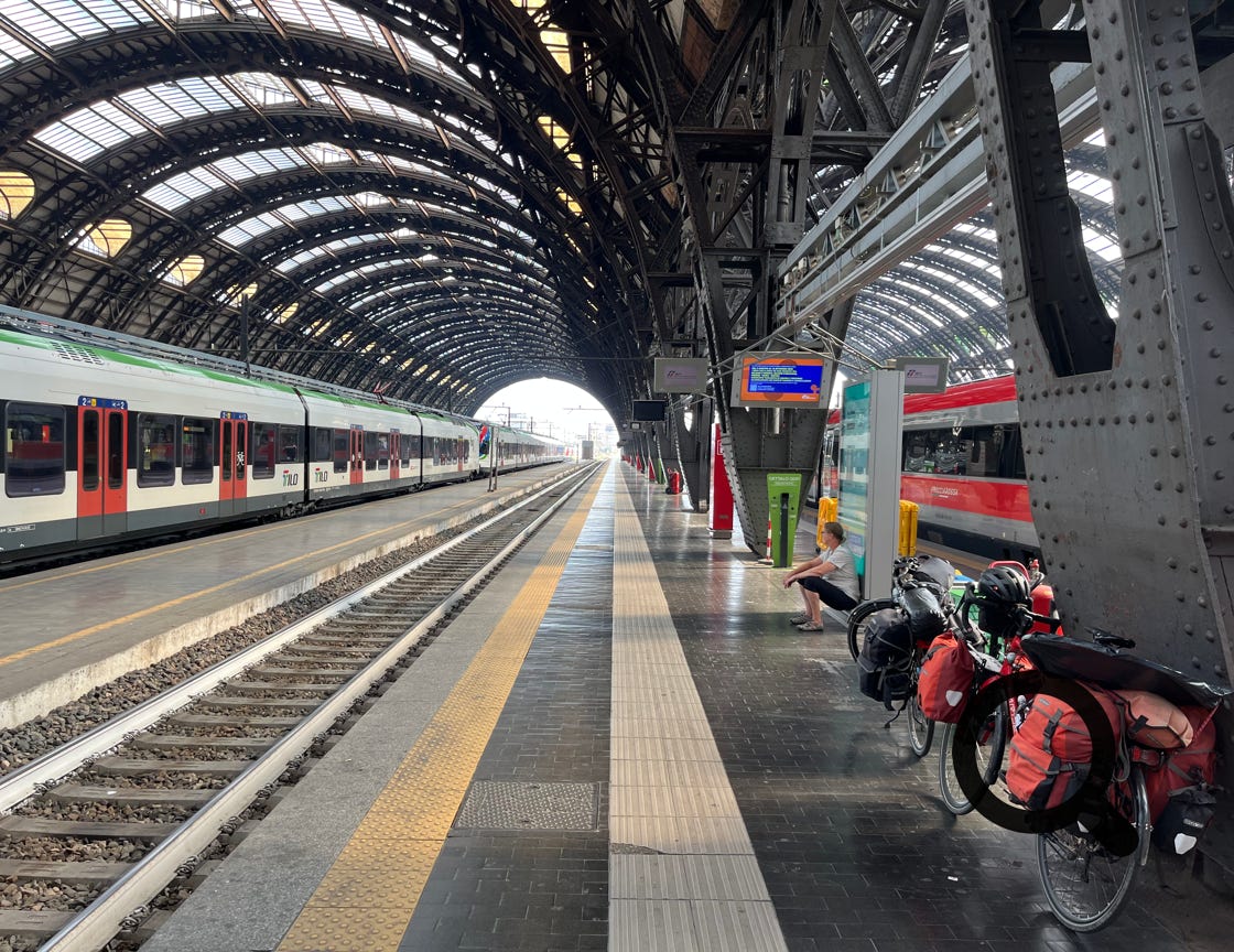 Während wir aus Italien in die Schweiz fahren, denken wir an die vergangenen Wochen zurück. Wir haben viel gesehen und erlebt. Während der Zug die Schweiz durchquert, sehen wir immer wieder Orte, an denen wir in den letzten Jahren gewesen sind. Die Fahrgäste werden an jeder Station weniger, irgendwann kommen wir mit Wolfgang ins Gespräch, der allein mit Rad und Zelt durch Italien gereist ist und jetzt zurück nach Haan fährt.