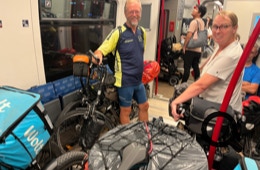 Kurz vor der geplanten Abfahrt ändert sich der Bahnsteig, an dem unser Zug abfährt. Wir müssen ordentlich laufen, bis wir an den Fahrradwagen kommen. Die Räder können wir nur noch knapp unterbringen, weil wahrscheinlich wieder nicht reservierte uns den Platz wegnehmen.