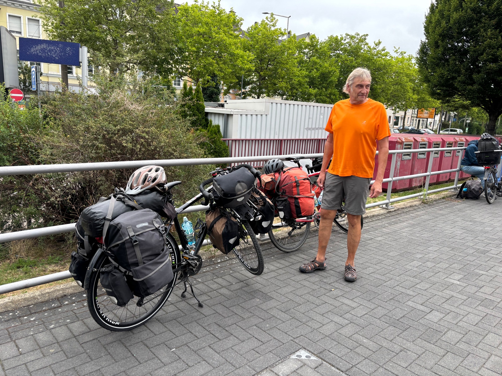 Im Laufe der etwa fünfstündigen Fahrt fällt zunächst die Klimaanlage aus. Als der Zug sich gerade langsam zu leeren beginnt, müssen wir in Stuttgart „gestrandete“ Passagiere aufnehmen. Auch das Fahrradabteil ist danach wieder komplett gefüllt. Außerdem wird es im Zug immer wärmer. Wir haben mittlerweile vergessen, warum wir die Deutsche Bahn gelobt haben.