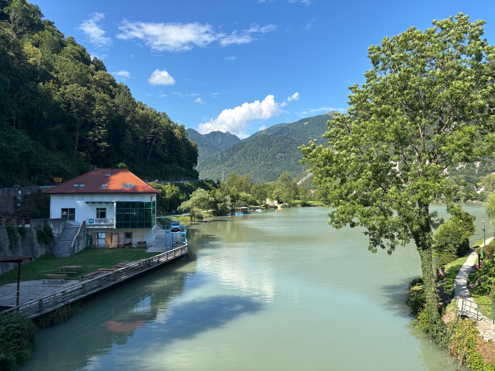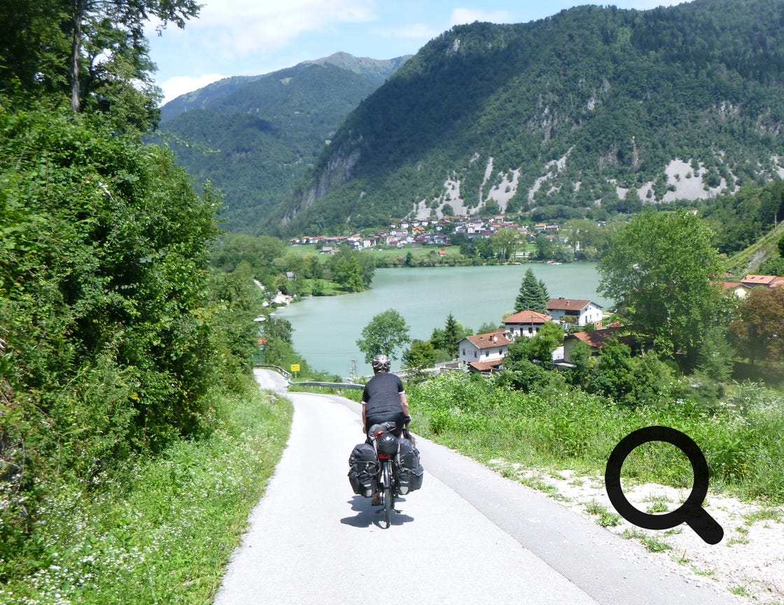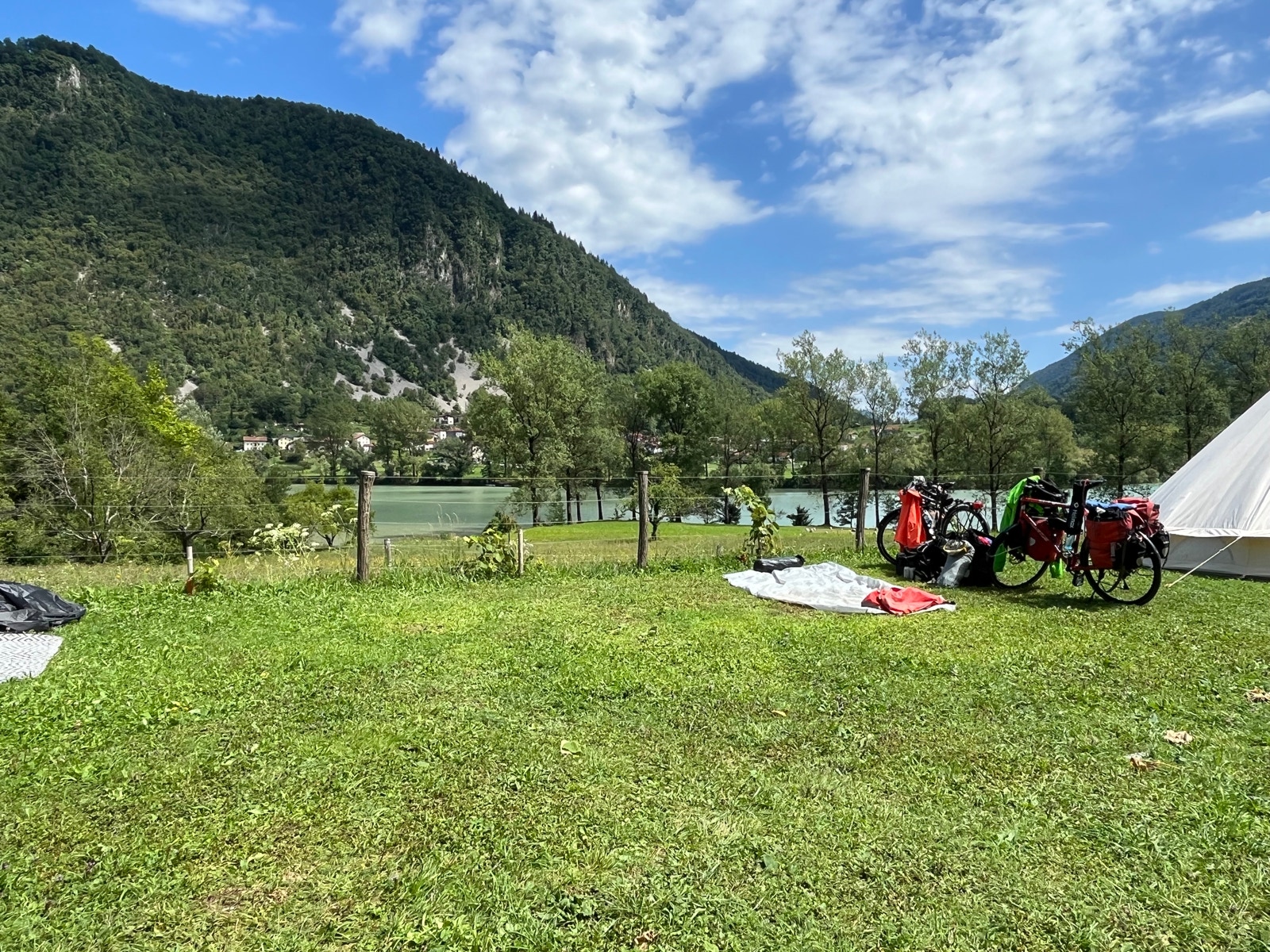 Die letzten drei Kilometer rauschen wir steil bergab nach Most na Soči auf den Campingplatz am See.
