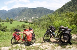 Wir sind früh wach und bauen schnell das noch nasse Zelt ab. In Richtung Gorizia geht es zurück auf unsere gestrige Route, dann biegen wir links Richtung Soča ab und es führt in Serpentinen aufwärts.