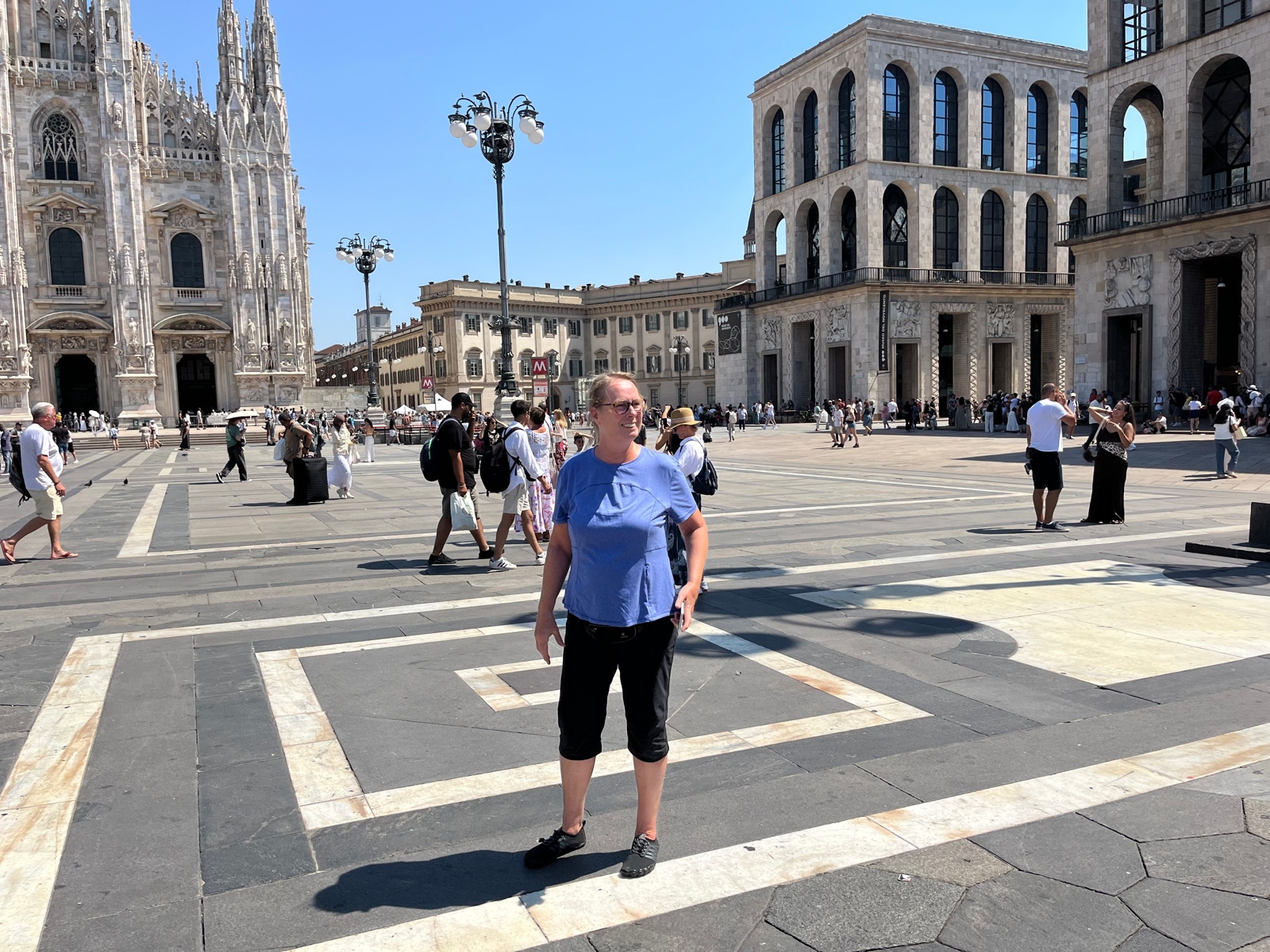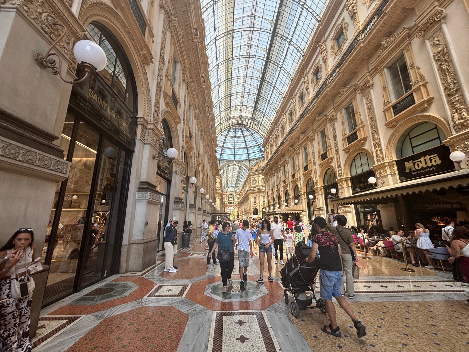 Im Hotel ist unser Zimmer bereits beziehbar und wir können schon um 13 Uhr einchecken. Die Räder nehmen wir mit ins Zimmer in der ersten Etage. Anschließend fahren wir mit der Metro zum Dom und schauen uns den prächtigen Domplatz und die grandiose Einkaufspassage an, in der sämtliche Nobelmarken Mode und Accessoires verkaufen.