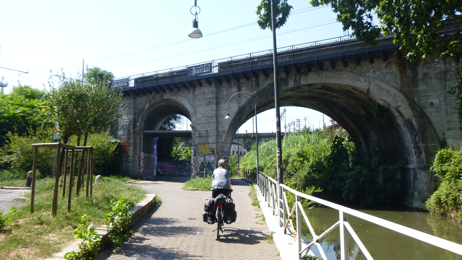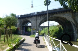 Ein gut ausgebauter Radweg entlang eines Kanals führt uns bis fast zum Hauptbahnhof. Kilometerlang an Parks, Spielplätzen und Wohngebieten vorbei, und überall sitzen Menschen auf Bänken, joggen oder fahren Rad. Zwischendurch sehen wir einen Biber im Wasser.
