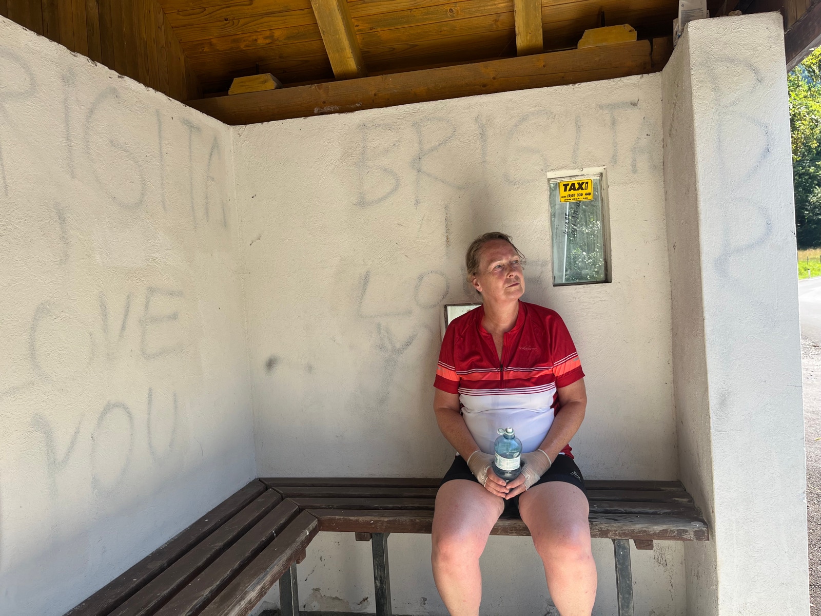 Das ändert sich nur vorübergehend, als wir durch Kneža kommen, dort geht es recht steil über einen hohen Buckel. Danach bleibt es wieder mit 1 - 3 % Steigung fast flach. Die Dörfer sind auf der ganzen Strecke - außer Kneža - klein und ohne Läden oder Gastwirtschaften.