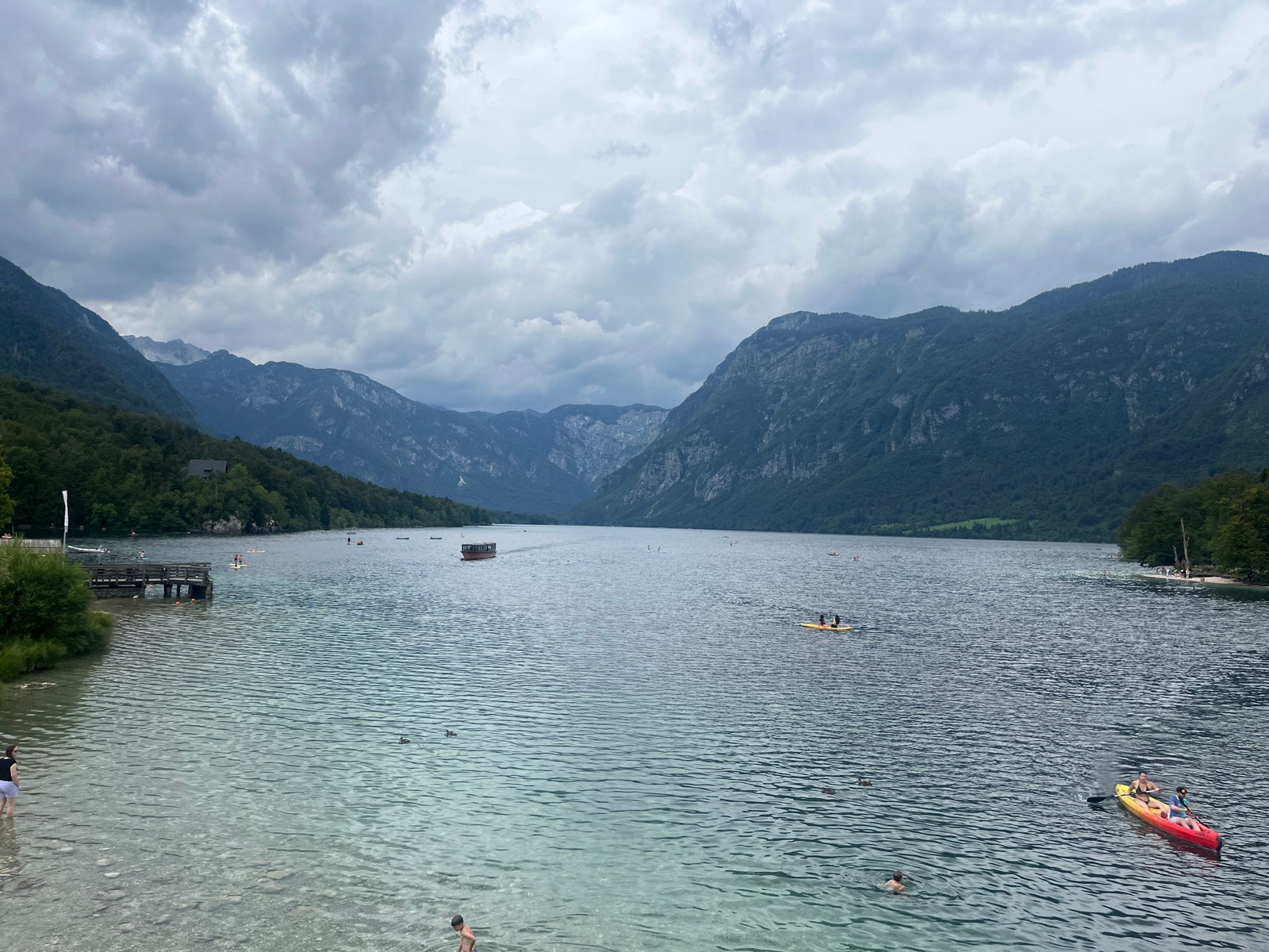 Gegen Nachmittag wird das Wetter schlechter und Regen ist angekündigt. Wir nehmen den Bus bis zum See und machen dort einen kleinen Spaziergang. Alle Park- und Badeplätze sind voll belegt. Und das, obwohl immer mehr dunkle Wolken aufziehen. Der See ist sehr malerisch, auch bei dunklen Wolken.