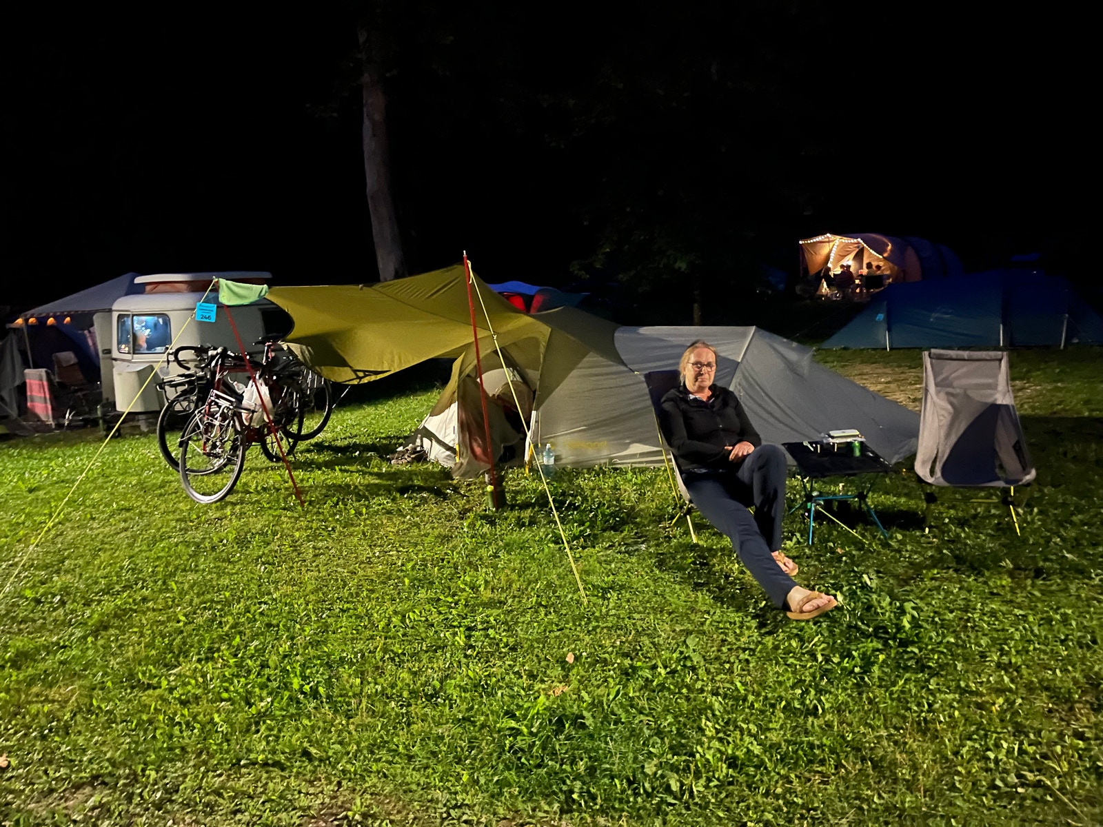 Wir gehen früh schlafen und hoffen, daß morgen schöneres Radwetter ist.